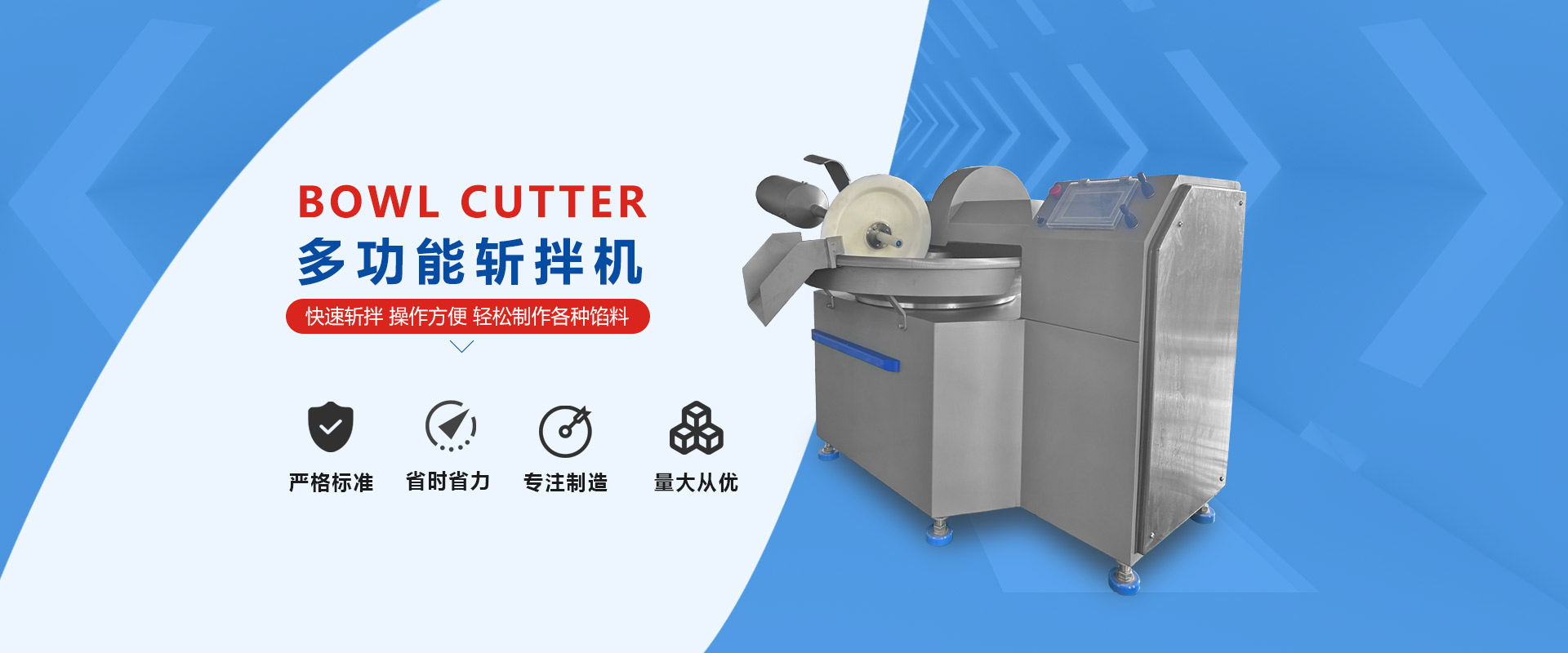 刀速、鍋速、斬刀與轉鍋的間隙達到組合,使斬切產品細度好、升溫小、斬拌時間短...
